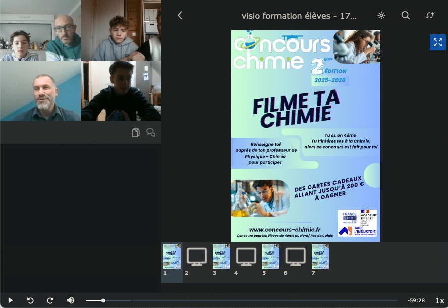 Une visioconférence d’information a été organisée le mercredi 17 décembre afin d’accompagner les élèves sélectionnés pour le concours Filme ta